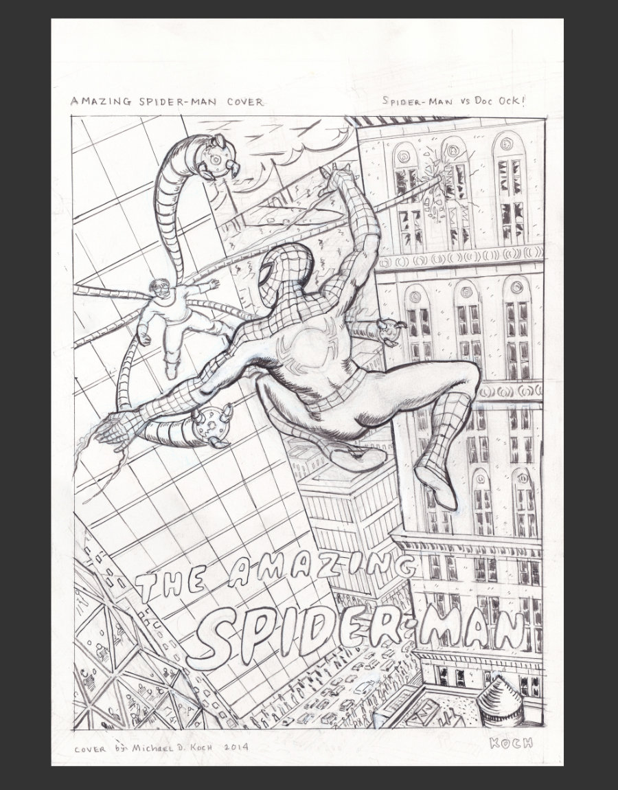 Marvel Folio | “Spider-man vs. Doctor Octopus over New York City” | Poster/cover idea (for practice) | pencils/inks (2014)