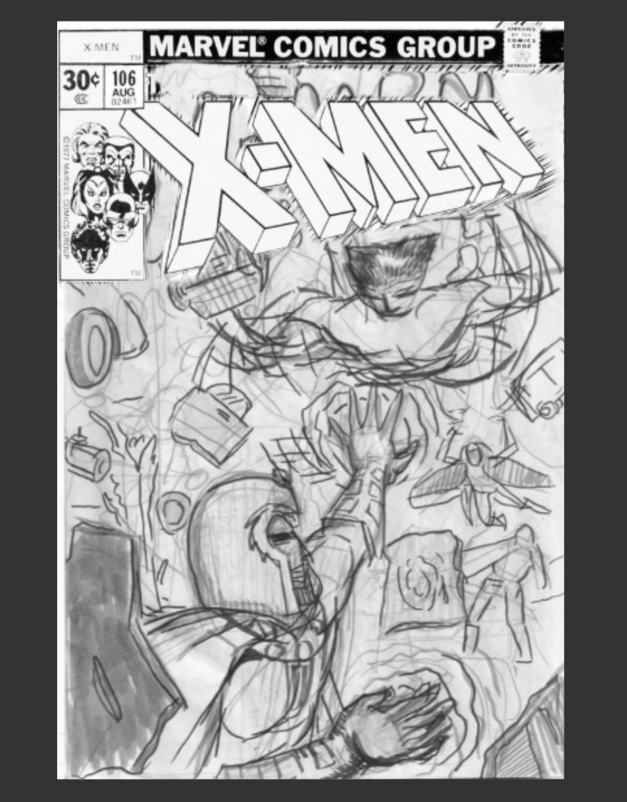 Concept Sketch | “X-men vs. Magneto!” (next cover idea I might develop) | brush & ink (sketch 2014/composite with logo 2022)