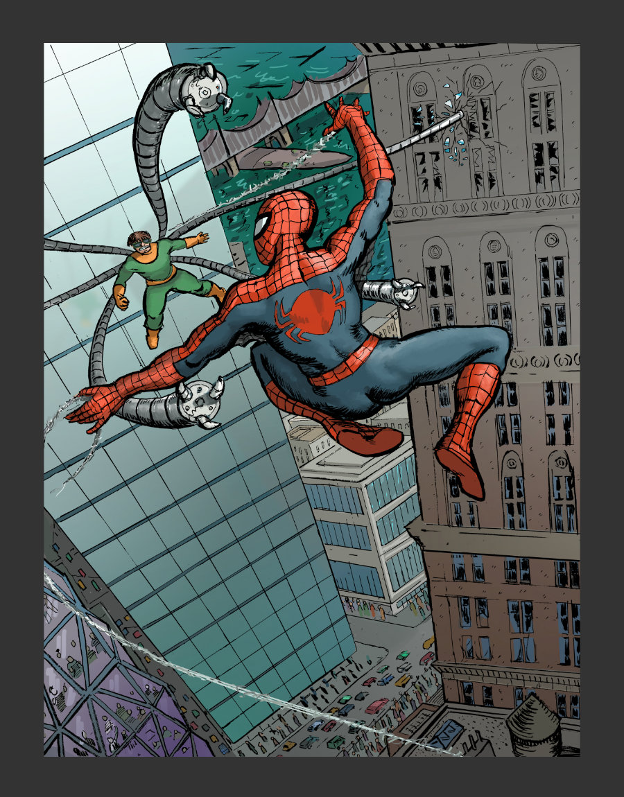 Marvel Folio | “”Spider-man vs. Doctor Octopus over New York City” | Poster/cover idea (for practice)| pencil/inks/color (2014)