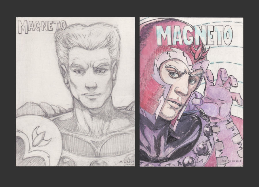 Marvel Folio | Marvel Pinups Art for Comic Art Live – “Magneto” / “Magneto” pencil portrait / ink, watercolor+gouache on watercolor paper (Nov 2024)