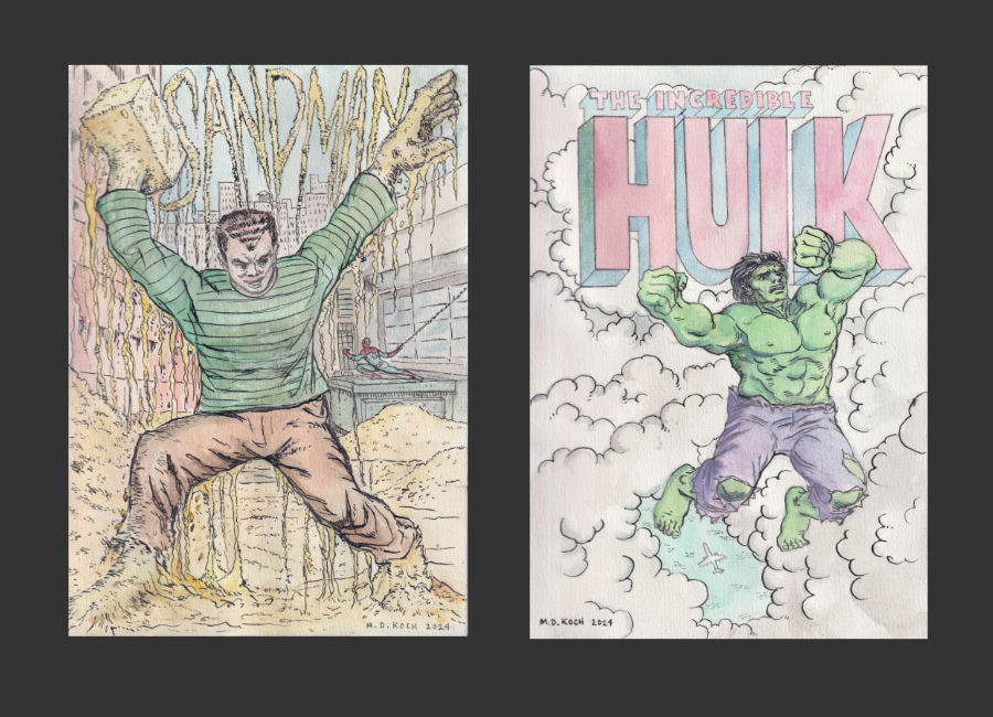 Marvel Folio | Marvel Pinups Art for Comic Art Live – “Sandman” / “The Incredible Hulk”- ink, watercolor+gouache on watercolor paper (Nov 2024)