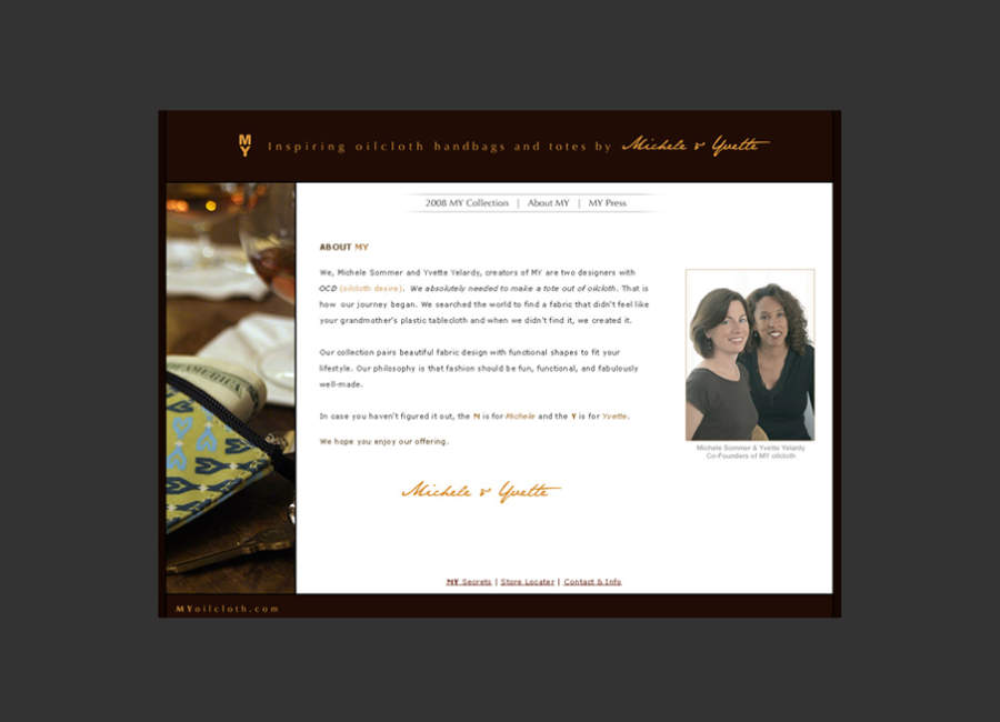 MY Oilcloth | fashion handbag ecommerce site | about MY – Michelle & Yvette (2008)