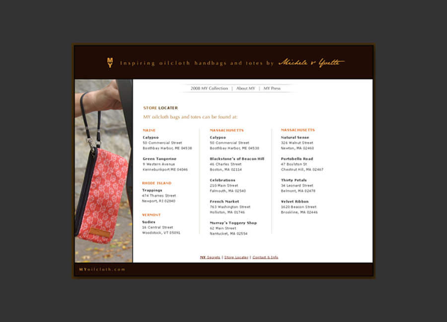 MY Oilcloth | fashion handbag ecommerce site | MY store locater (2008)